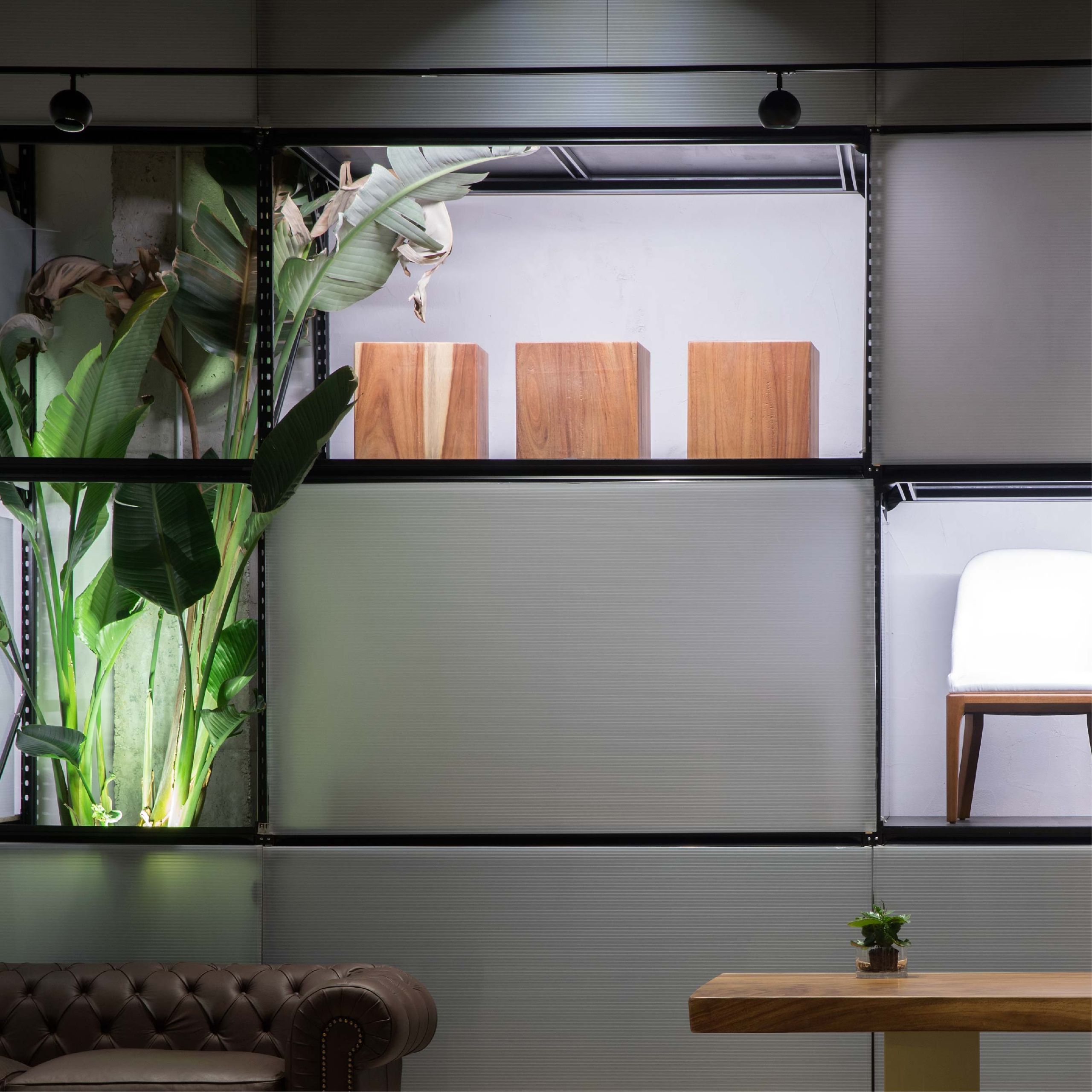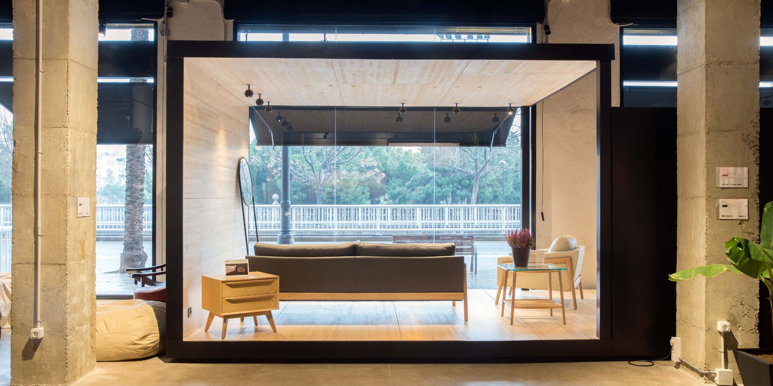 El diseño se plantea desde un criterio de mínima actuación, dejando todos los techos con las instalaciones vistas pintado en negro y un pavimento de hormigón en todo el showroom. En ese gran espacio, además de las diferentes piezas de mobiliario, se deja caer un pequeño elemento que se pretende utilizar cómo stand para las ferias del mueble así como de referencia de la marca conteniendo las piezas más icónicas y los materiales de acabado para las diferentes piezas de la firma.